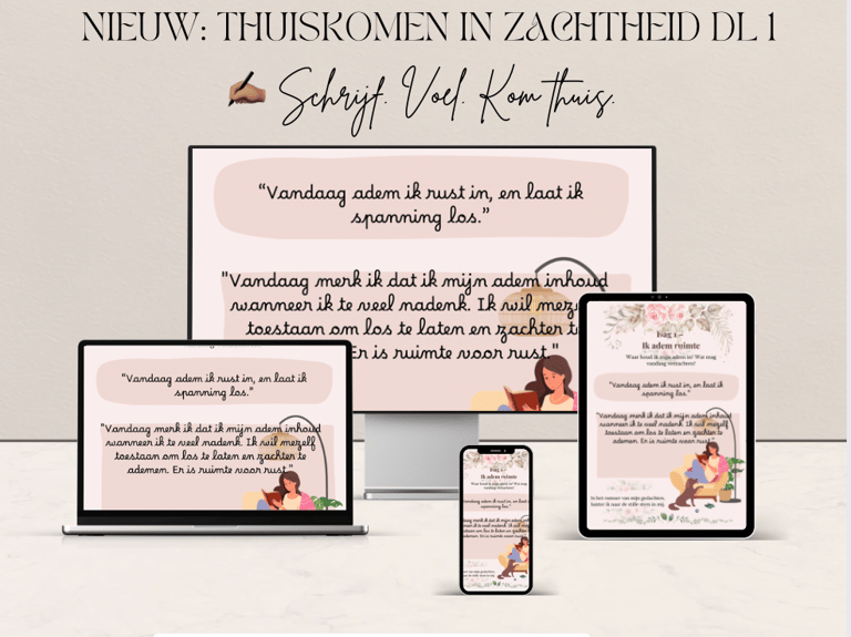 Zachte schrijfruimte om elke dag dichtbij jezelf te blijven.